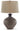 - Made of antiqued bronze-tone metal with fabric modified drum shade