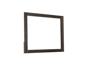 Bedroom Mirror. Elevate your bedroom environment with the Town collection, a beautiful blend of rustic style and modern sophistication. Each piece features a multi-step lacquer finish that highlights rich brown and gray tones, enhancing the wood's natural beauty. Crafted from pine and poplar, this collection boasts a wire-brushed wood texture for added character. This beautifully designed bedroom set will transform your space and leave a lasting impression. The Town mirror is designed to perfectly complement the dresser, making it ideal for adding a touch of sophistication to your bedroom décor