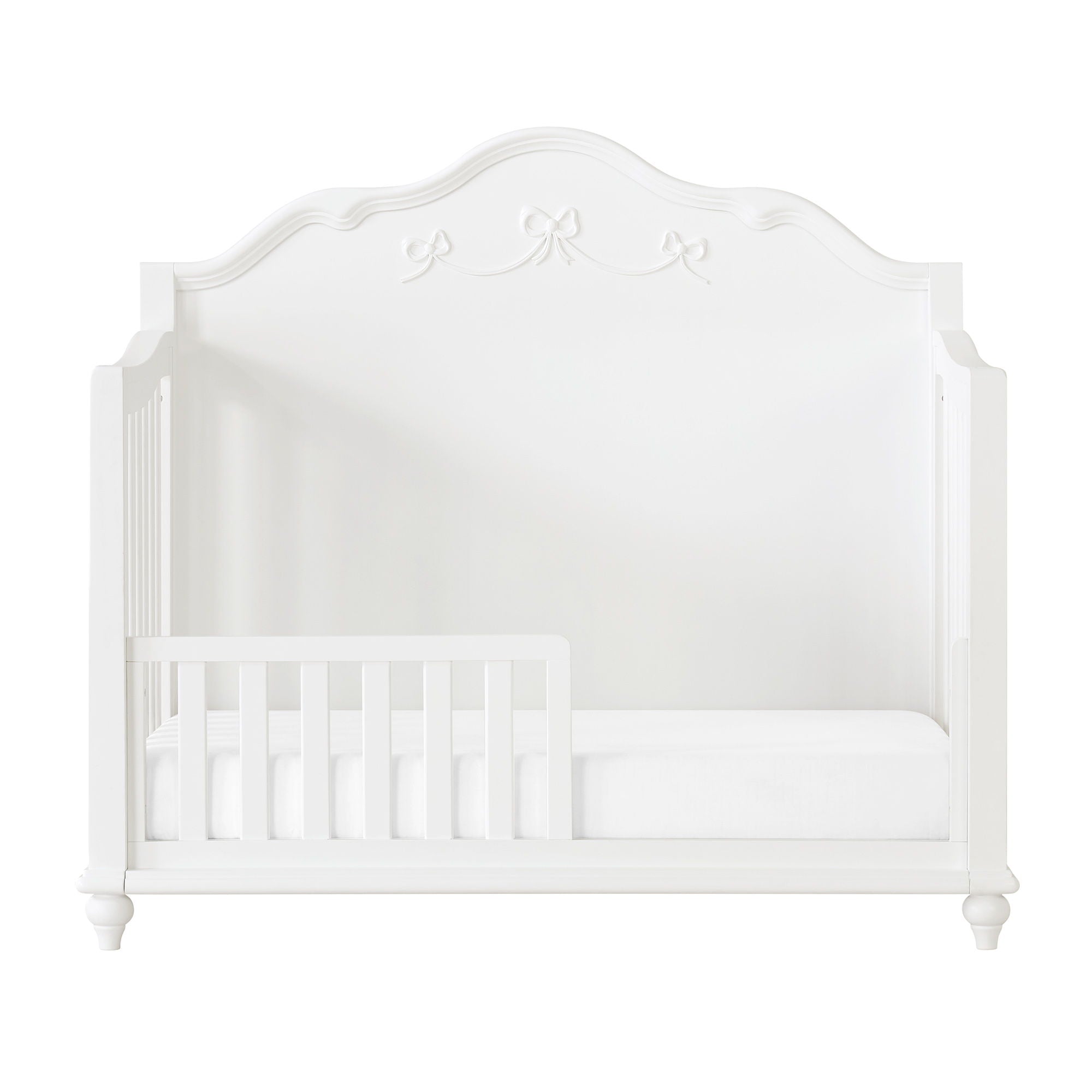 Adorn your child's nursery with the traditional style of the Alana Crib with Guardrails. Framing of solid poplar wood provides durability, while the crisp, white finish makes this piece easy to pair with various color palettes and existing nursery pieces. Three adjustable base heights enhance longevity, allowing extended use as your child grows. Decorative molding and bun feet add delicate stylistic touches that anchor this piece in timeless elegance. The Alana Crib with Guardrails is a practical, quality, and stylish addition to your child's nursery.