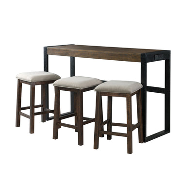 The Caesar Multipurpose Bar Table Set is a remarkable piece for your home. This set can be placed anywhere in your home, from a kitchen nook to a spot behind the sofa in the living room. This set includes one bar height table and three bar stools. The barstools are upholstered with Taupe fabric, and a foam cushion seat; which enhance your comfort when just sitting finishing up work or watching TV. Also, distressed markings can be found throughout the entire set which gives this piece that rustic vibe you have been looking for. Another amazing feature this set offers is a USB and plug outlet. The days of having to stretch your power cord from the wall to your table are long gone! So grab your laptop and set up shop with this amazing bar table set.