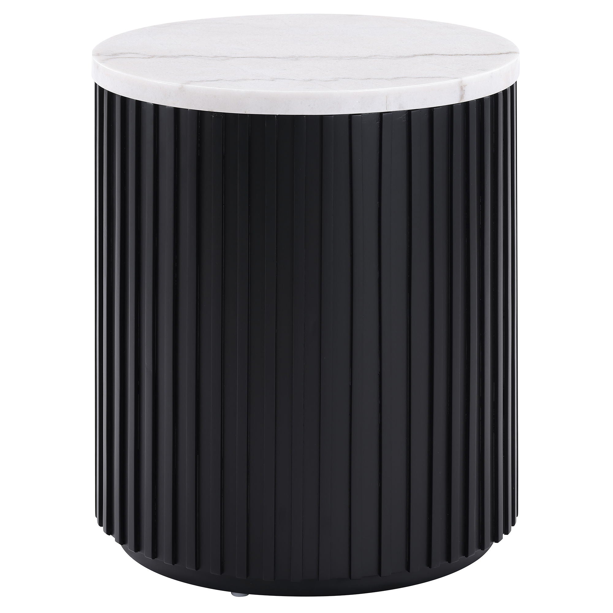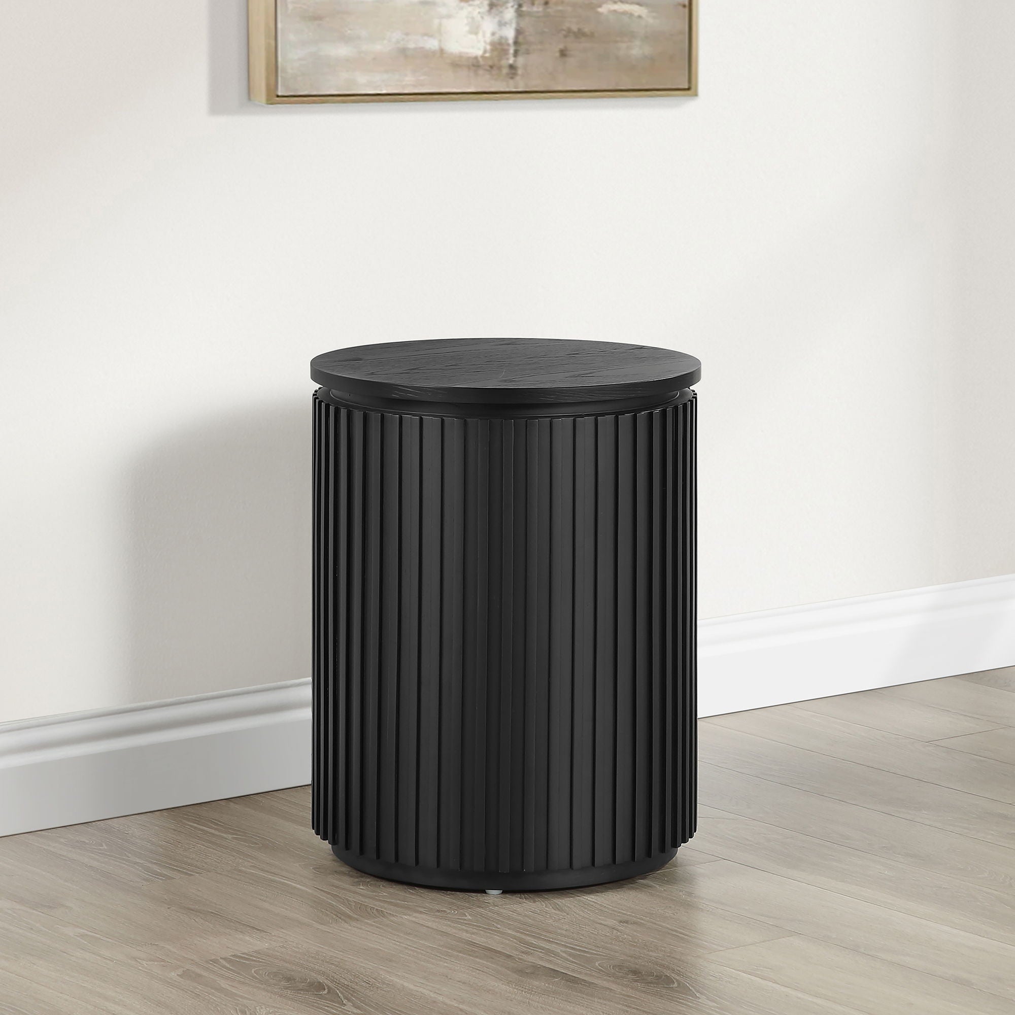 Inspired by Art Deco and Empire styling, the Colvin 18" Round End Table brings modern elegance to your living area. Finished in sleek over Asian hardwoods, it radiates warmth and beauty, perfect for those who appreciate sophistication. This versatile piece is ideal as a side table companion or at the end of a sofa, effortlessly blending style and functionality. Featuring a reeded base and a spacious round top, the Colvin End Table provides ample room for living room essentials, combining timeless design with practical utility.