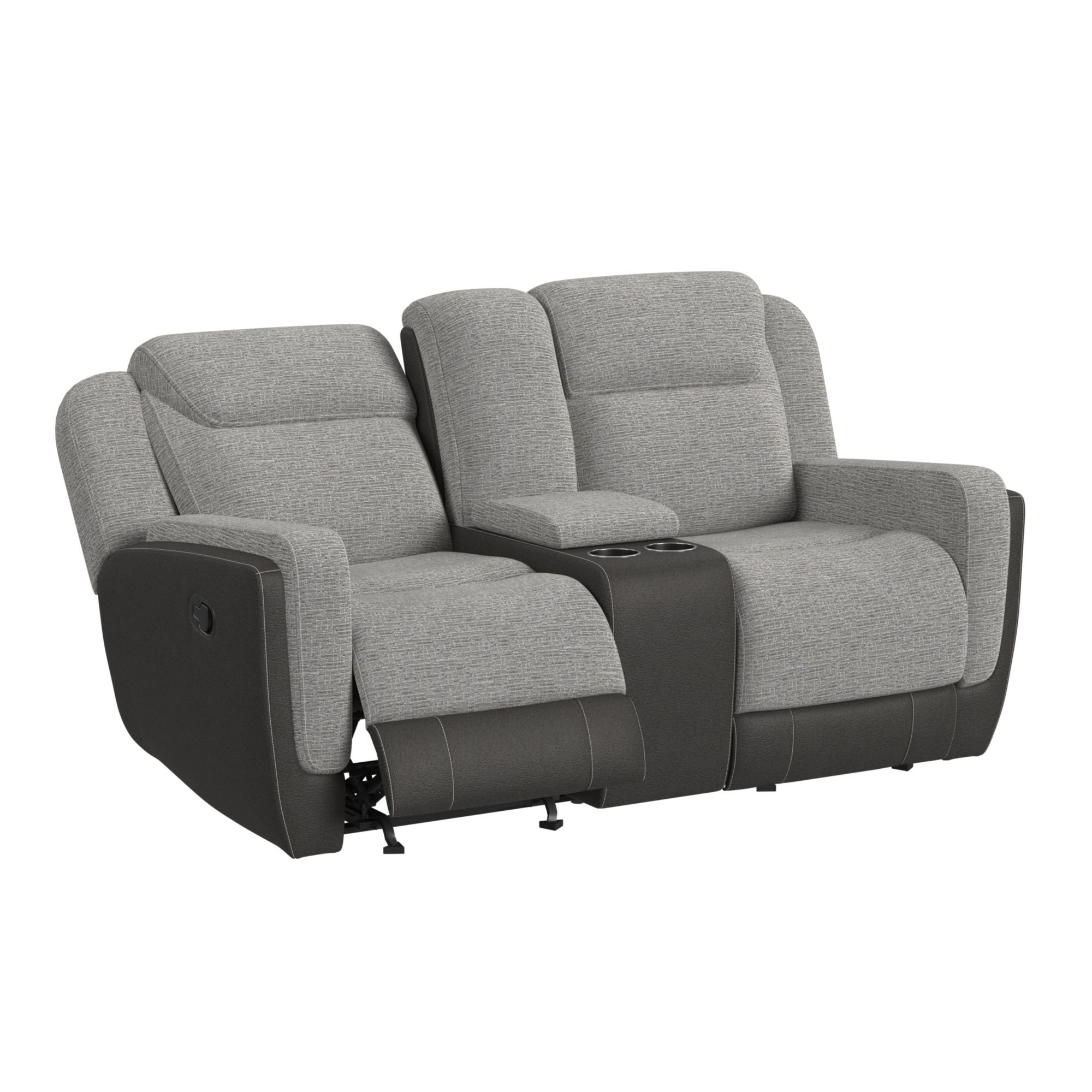 Experience unmatched comfort and convenience with the Hornet Motion Glider Loveseat with Console. Designed with aesthetic dual-toned upholstery, this piece offers a stylish look that complements any living space. Gliding and manual reclining functionality allows for easy adjustment to your perfect lounging position, while steel springs seating and foam cushioning provide long-lasting support. The center console features two metal cupholders and a convenient storage compartment, making it the ideal spot for unwinding with all your essentials close at hand. The Hornet Motion Glider Loveseat accents your living with refined style and ageless comfort.