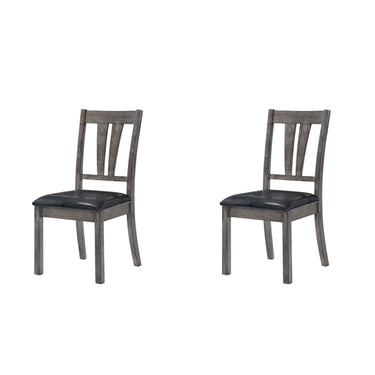 The Nathan Dining Side Chair Set w/ Upholstered Seats is the perfect addition to your Nathan Dining Table! This chair set includes two dining room chairs in a cool, gray oak finish. The fan-back style of the chair adds an unique look to this already stunning set. The foam cushion seat is upholstered in a black, faux leather fabric; creating the perfect rustic farmhouse look. Pair your Nathan Dining Chairs with the Nathan Dining Table to complete your dining room.