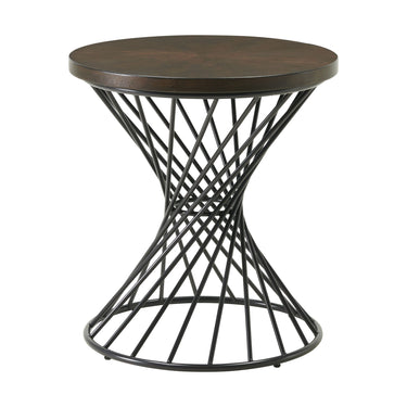 The Terri Table infuses a playful yet sleek attitude into your space, and add a pop of rustic farmhouse to your living room with this distinctive table. This eye-catching table design showcases a twisted metal base in a black finish with a contrasting rounded wood top. The combination of these materials play into the industrial farmhouse look that this table was inspired by.