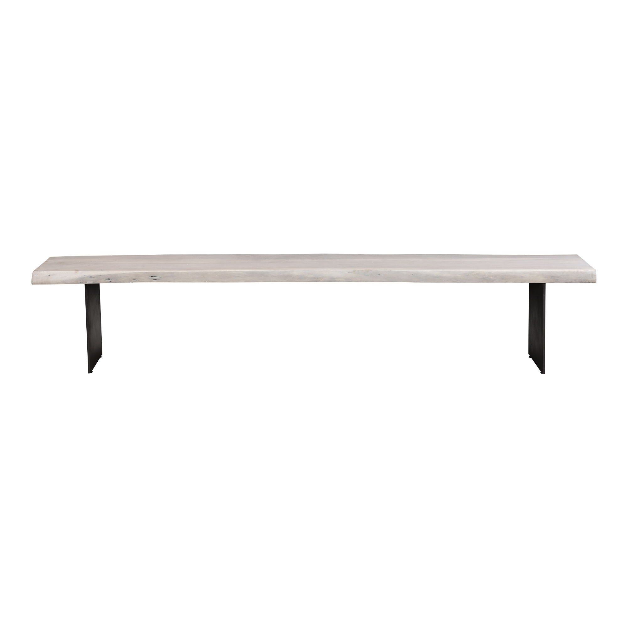 With a live edge, the Evans dining bench playfully pairs with a variety of dining styles. Made with white-washed solid acacia wood and dark iron legs, this bench features its own unique combination of knots and grains. Whether you're looking for an industrial or contemporary modern piece, this table will be the perfect fit.