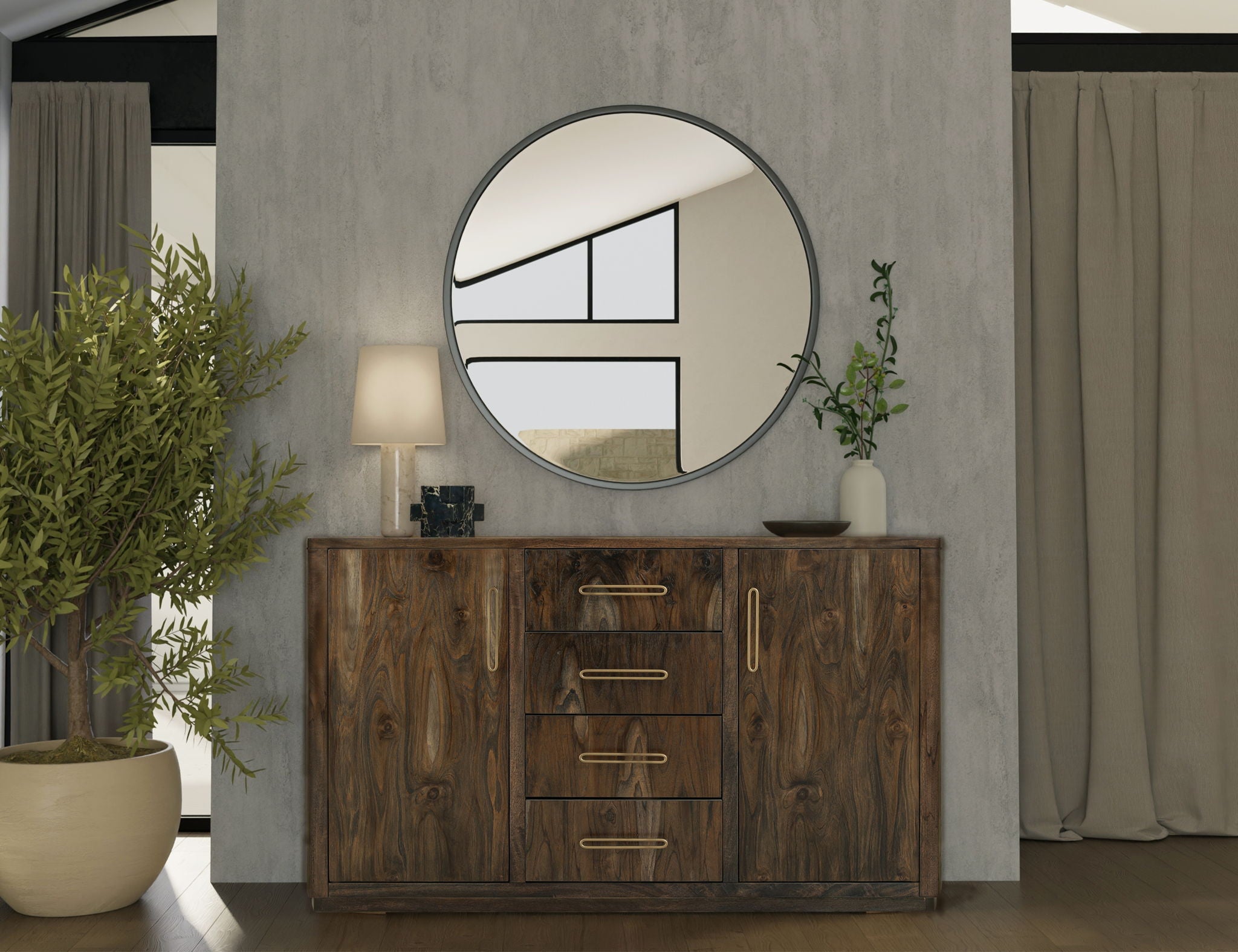 4 Drawer & 2 Door Buffet. Our Balam collection is handcrafted from mango and teak wood. This simple yet stunning collection will bring an organic, modern touch to your space. The Balam buffet highlight the wood's unique grain and offers ample storage for your essentials, making it a striking addition to any room décor you choose to design. The Balam collection not only improves your home aesthetics but also highlights skilled craftsmanship. Transform your space with these practical and attractive pieces.