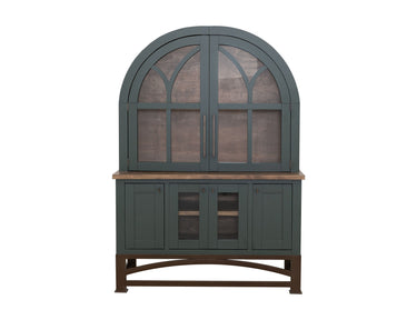 6 Door, Hutch. The Obsidian Hutch is a stunning piece of furniture inspired by the elegant designs of mid-18th-century French furniture. It seamlessly combines the timeless allure of old-world charm with the sleek lines of contemporary design, making it a perfect addition to any dining area. Expertly crafted from high-quality solid pine and okume wood, this buffet and hutch feature two stylish arched glass doors, adding a touch of sophistication to your living space.