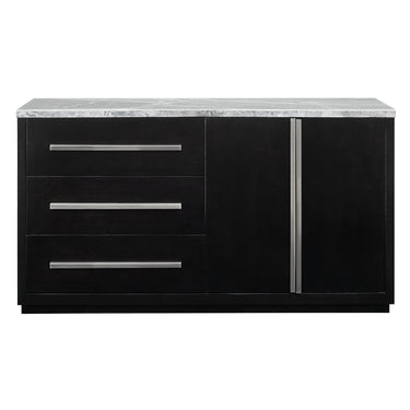 A clean modern look and asymmetrical design make the Camila Server perfect for any contemporary styled room. Generous storage add function to the fashion forward design of a storage piece that is as comfortable in a Home Office setting as it is in a Dining room. A gray marble top blends with the ebony finished wood in a neutral palette that stands out for style.