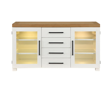 A modern interpretation of the classic dining side piece, the Magnolia Server brings both beauty and function to any room. The glass doors and shelves offer a striking display area that is illuminated with interior LED lighting operated with a touch of the door hinges. Adjustable shelves and four drawers offer generous storage that can be configured to fit display pieces exactly. Interior glass shelves allow light to reach every corner of the cabinet for astriking display piece.