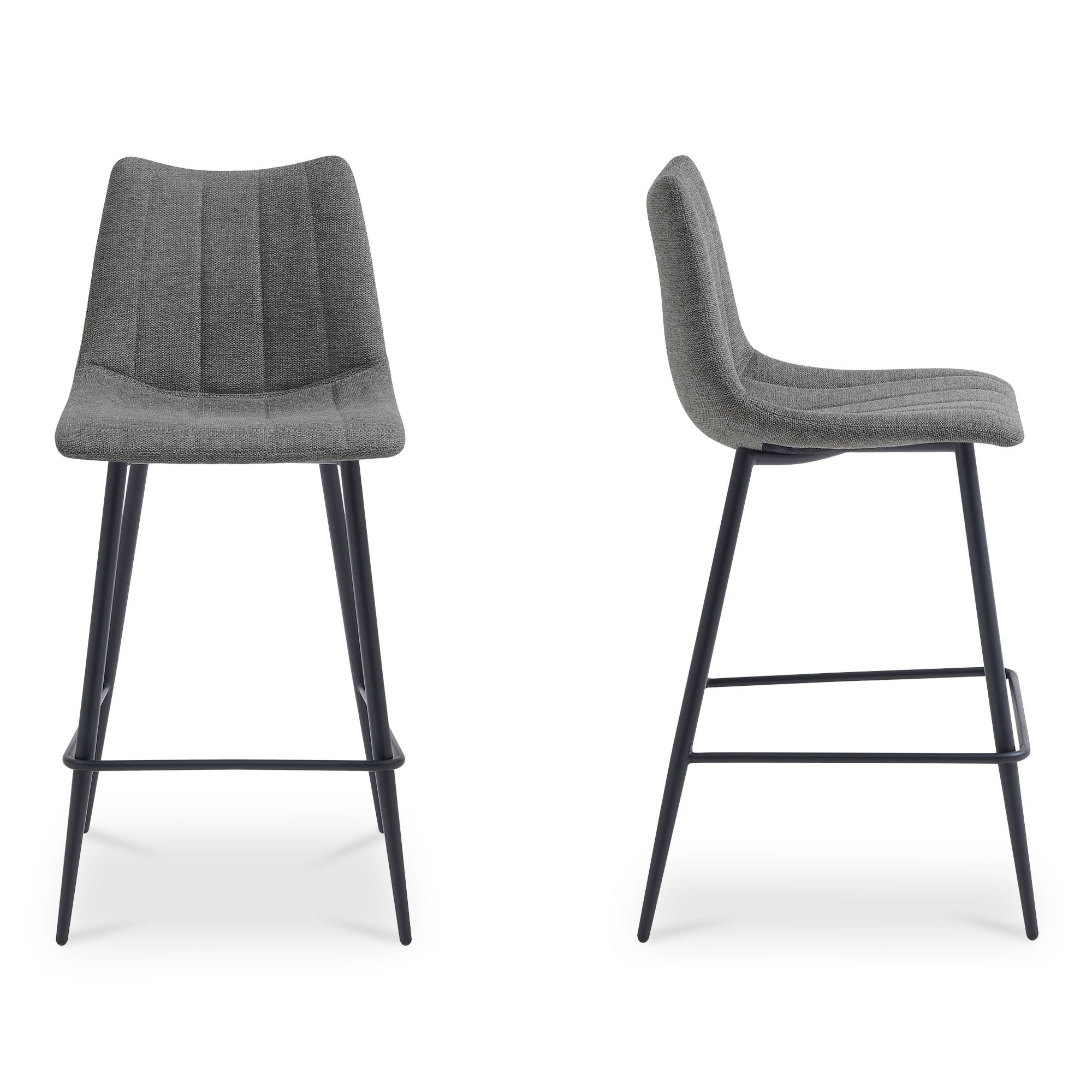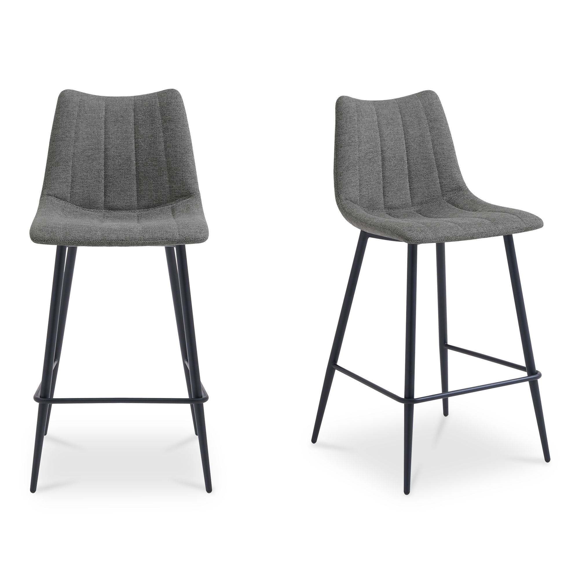 Contemporary modern counter stools get a new take with this sleek aesthetic. The Alibi counter stool features striking vertical line stitches that add subtle detail to its monochromatic design. An easy-to-clean performance fabric seat is shaped to fit for comfort so guests can relax at the island or bar counter.
