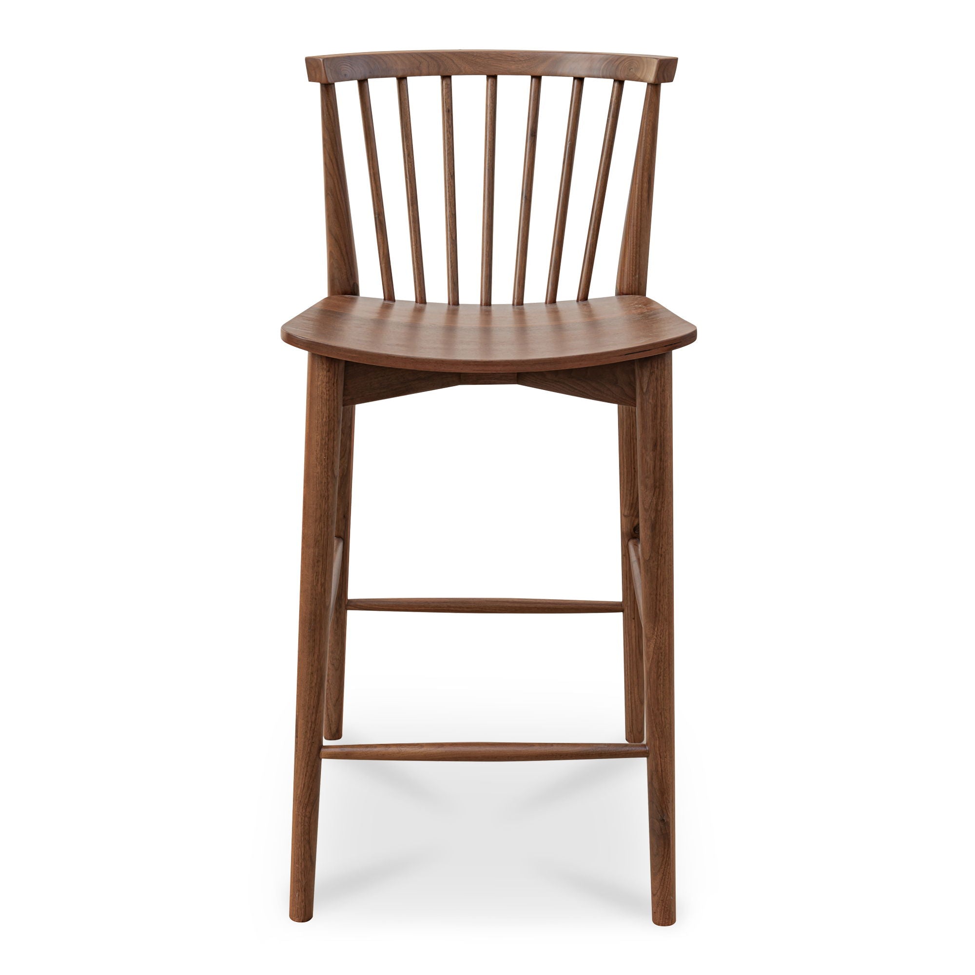 Crafted from solid walnut, the Marly counter stool exudes warmth and character. This spindle-back chair's graceful silhouette offers visual intrigue and ergonomic support, while the smaller scale ensures versatility. Sold in sets of two.