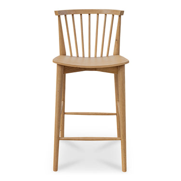 Crafted from solid oak, the Marly counter stool exudes warmth and character. This spindle-back chair's graceful silhouette offers visual intrigue and ergonomic support, while the smaller scale ensures versatility. Sold in sets of two.