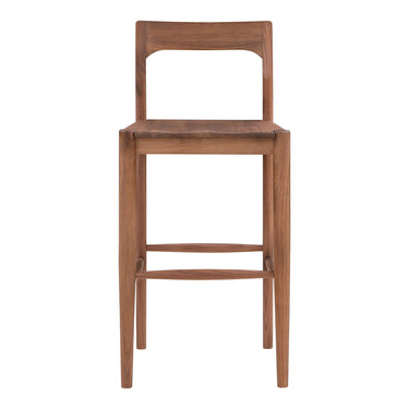 Available in walnut, the Owing counter stool is a refined spin on the traditional. Its mid-height, curved, open-back design combines comfort with casual appeal, while its solid wood frame creates a timeless, mid-century silhouette.