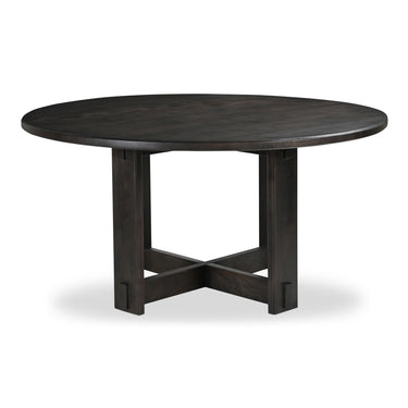 The Glenn Round dining table makes an exquisite statement with meticulous joinery detailing, a thick tabletop with beveled edges, and an oval shape. Crafted from durable, solid neem wood with a matte finish, it features a functional structure bar for stability, merging robust craftsmanship with a balanced, timeless appeal.