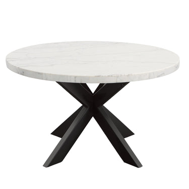 Round and flowing, the Xena 52" Round Marble Table is an elegant setting for an evening dinner or morning coffee. A beautiful round white marble top rests gracefully atop an ebony cross-timber plank table base in a mix of formal and informal designs that relaxes the table to a more casual presentation. The 52" round table easily seats six for a charming and delightful setting for any occasion.