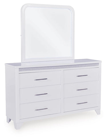This dresser with mirror is a showstopper, bringing a touch of modern glamour to your sanctuary. A sleek white finish and inset glitter accents create a luxurious feel, while six spacious drawers provide ample storage for your wardrobe. The mirror’s built-in LED lighting adds a soft glow, making it even easier to get ready in the morning or wind down at night. It’s a simply stunning way to achieve the bedroom of your dreams.