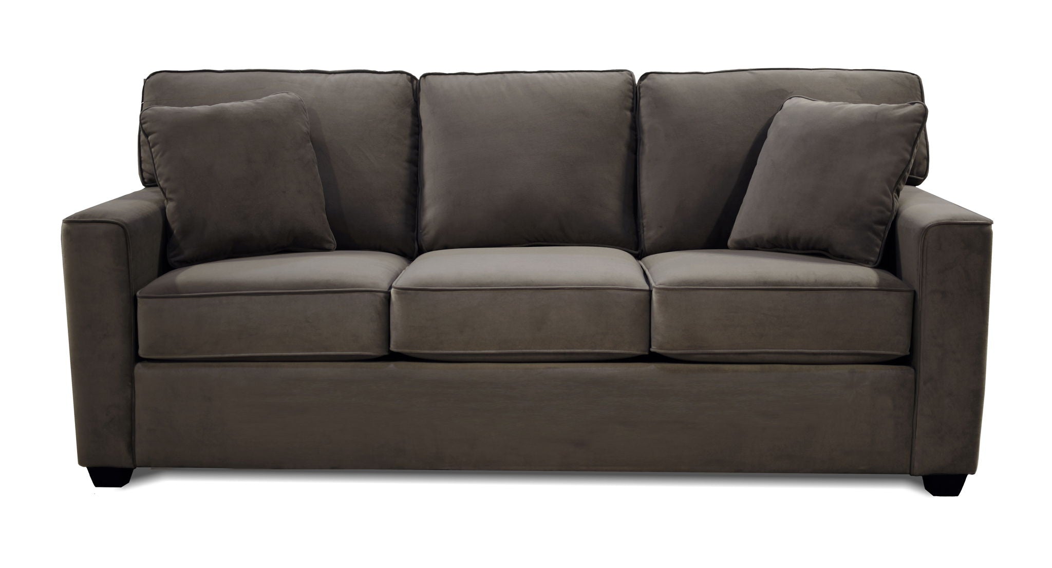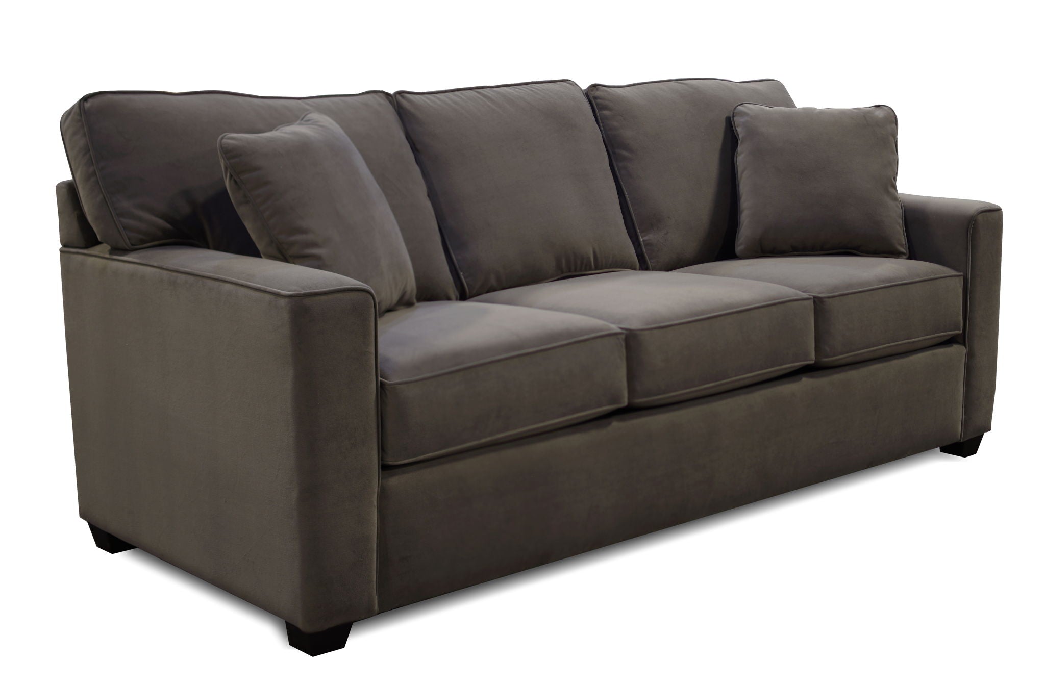The Jay collection boasts simple design yet offers supreme comfort. This track arm silhouette boasts a matching welt and pyramid leg. The group includes a sofa, loveseat, chair, ottoman, and queen sleeper.