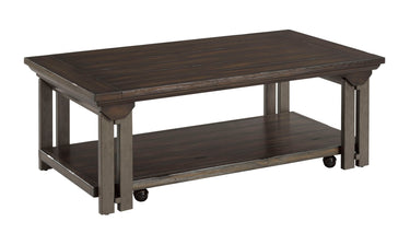 The Ketchum collection includes a rectangular cocktail table, rectangular end table, round chairside table, and sofa table.
