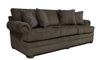Our Knox collection is anything but ordinary, with its transitional styling it stands out in any room. This series has a roll arm, bun foot, T-cushion, and optional antique brass nailhead trim on the arms and base. Available as a sofa, loveseat, chair, and ottoman.