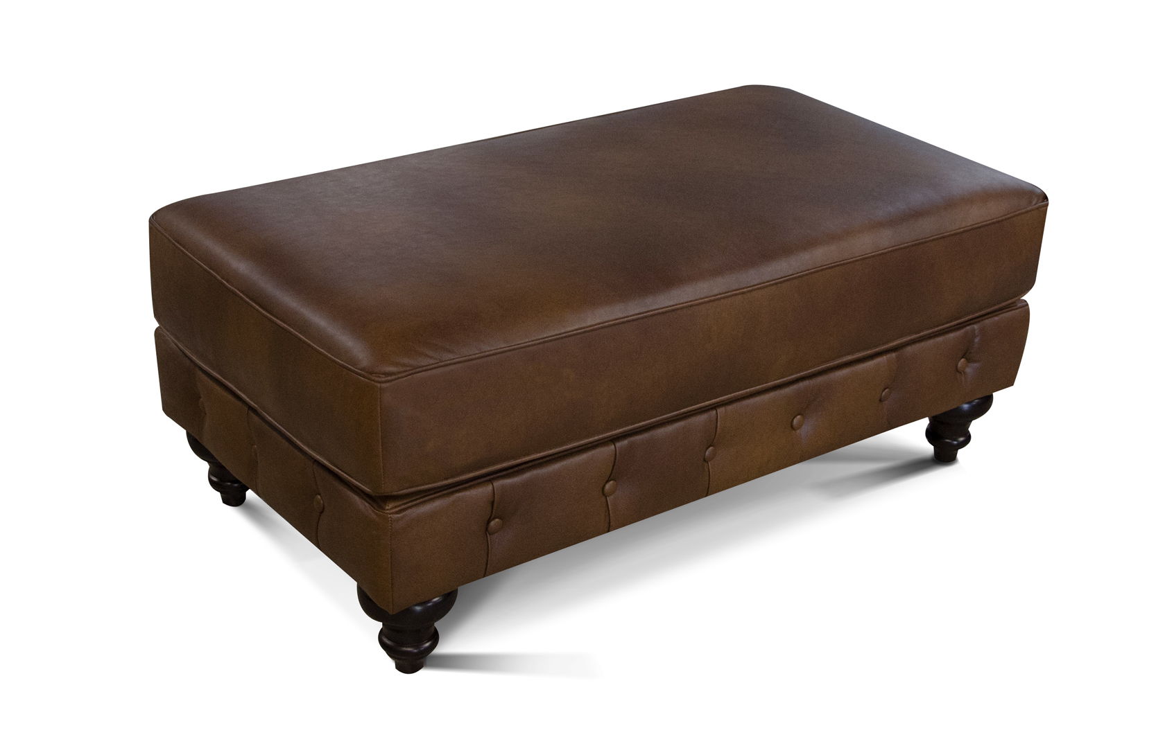 Our Rondell collection is our interpretation of the iconic English Chesterfield. This classic style features a beautifully tufted back and inside arm, simple front rail with button accents, a large rolled shelter arm accented with optional petite antique bronze nail heads, and an intricate turned wooden leg. We offer a sofa, love, chair, and ottoman covered in your choice of fabric or leather.