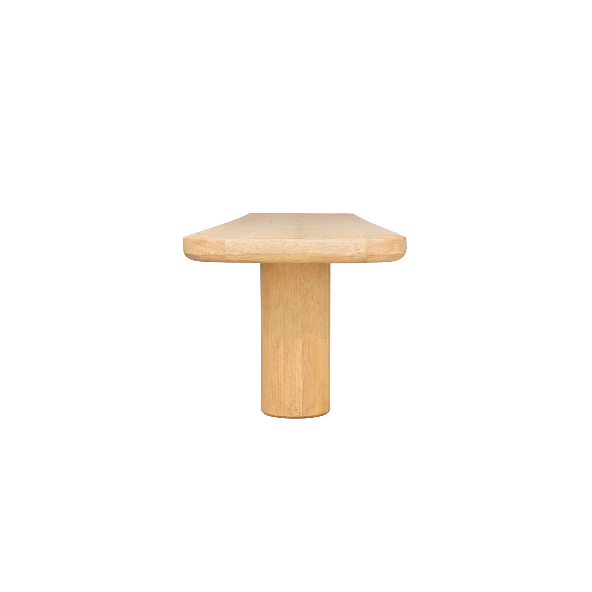 The Anders dining bench's minimalist silhouette, featuring a half-bullnose edge and sleek column legs, offers visual lightness that enhances various interior styles. Crafted from FSC-certified oak, each bench tells a unique story through distinct grain patterns and knots. Comfortably seating four, this versatile piece seamlessly adapts to any setting with its timeless elegance and sustainable design.