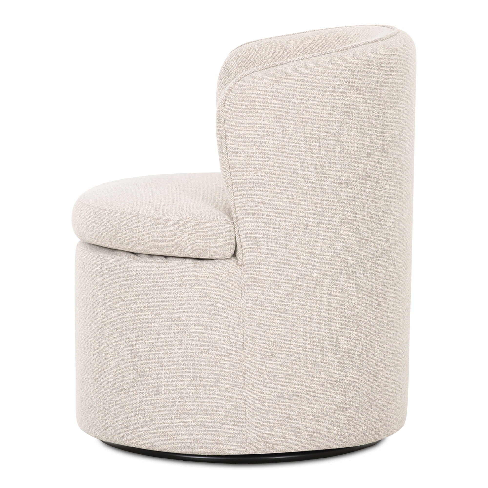 The Dane swivel dining chair adds sumptuous comfort with easy-to-clean performance fabric upholstery enveloping its gentle curves. An innovative 360-degree swivel base facilitates effortless engagement, perfect for intimate conversations.