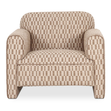 The Leo accent chair is a statement in modern design with its striking form and geometric pattern. This piece elegantly plays with curved and straight lines, as its squared side profile contrasts inward rolled arms and curved back. It offers a sophisticated silhouette accented with tonal contrast piping and fully upholstered legs.