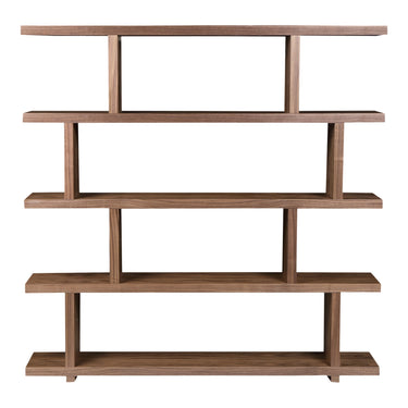 The Miri shelf is a paragon of versatility and sophistication with its open concept and modern aesthetic. Available in either a high-quality walnut veneer and Oak or a striking high-gloss white lacquer, this elegant piece serves as both a tasteful space divider and an exquisite geometric bookshelf. Effortlessly slide two Miri Shelf units together to create a seamless, expanded display.