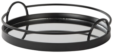 Crafted from metal, this mirrored glass tray features raised railings along the circumference to ensure the safety of your favorite keepsakes. Versatile and visually elevating, this is a great choice for decor spaces with a contemporary feel and design.