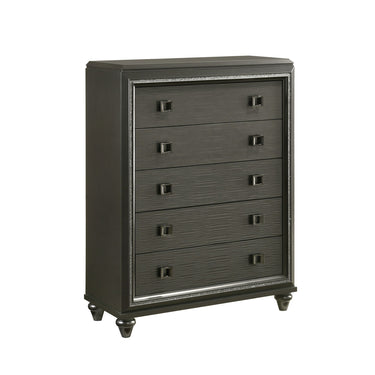 The Moonstone 5-Drawer Chest is going to look amazing in your bedroom! This chest comes with five, spacious drawers, allowing you to store away your belongings. The top drawer features a black, felt-lining making it easy to store away your more valuable items. The bottom drawer comes with a dust proofing layer to help further protect your belongings. Add this transitional piece to your home today for a look that will never go out of style!
