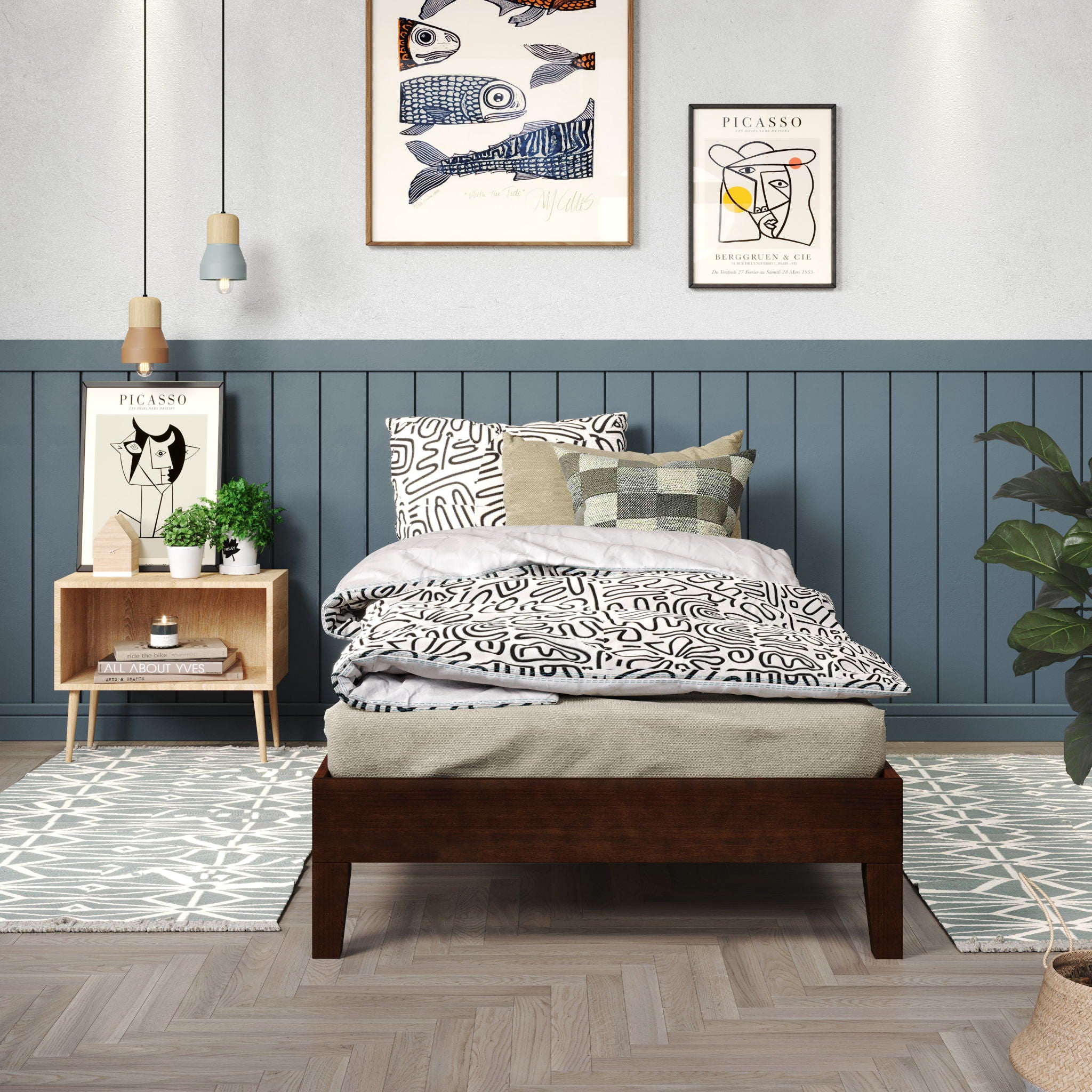 Clean lines and solid wood construction are th ehallmarks of the Nix Platform Bed. The modern silhouette of the Bed lends a simple sophistication to any room with a bold profile that fits many different interior decors. The dual-zone platform foundation is built to support both sides of a mattress without the need for a box spring. The low-profile look is captivating enough to build a bedroom around whether your style is Coastal, Farmhouse, Modern or Transitional with a style-blending design you will love.