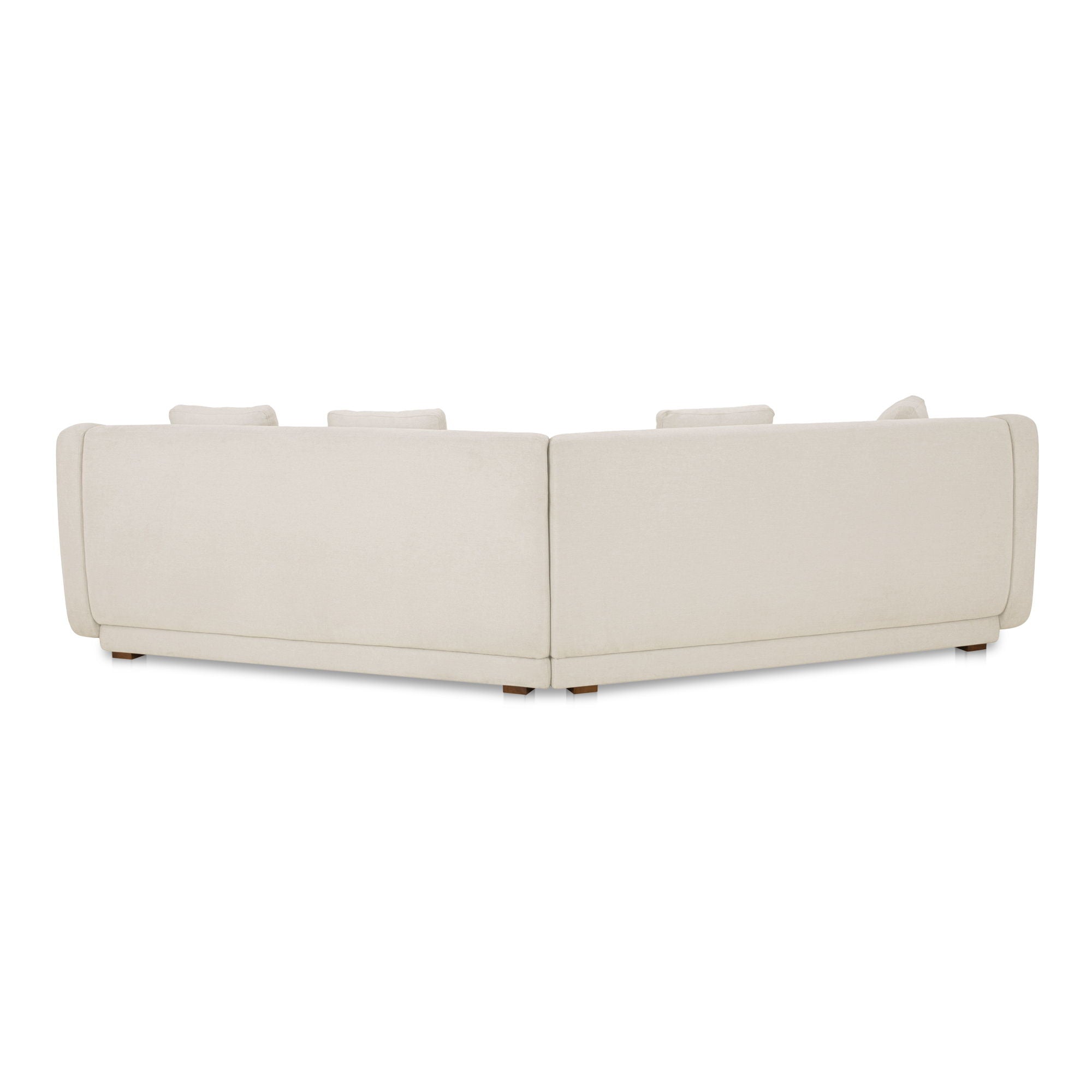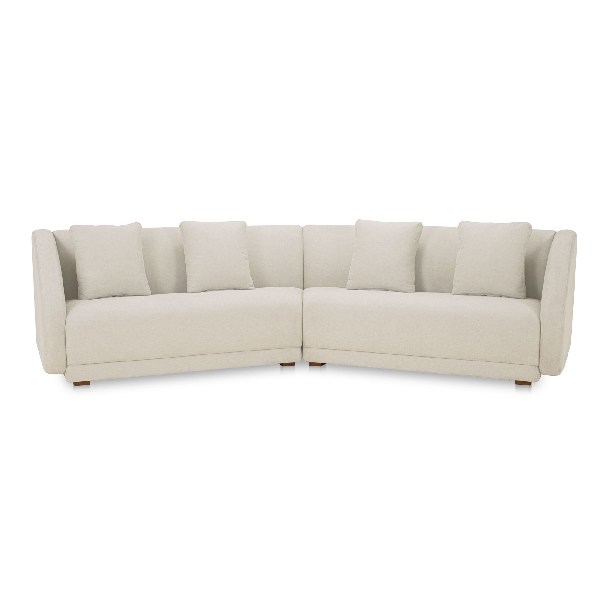 The Fraser sectional’s contemporary modular design infuses the elegance of gentle slopes with linear precision, harmoniously merging soft curves and angular forms into its 60s and 70s-inspired aesthetic. Crafted on a minimalist plinth base and upholstered in sumptuous 100% polyester, foam and fiber seating invites serene repose.