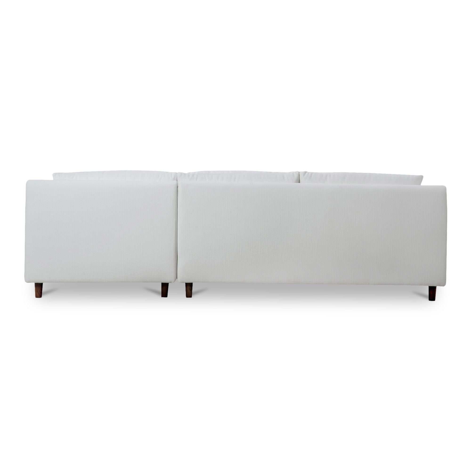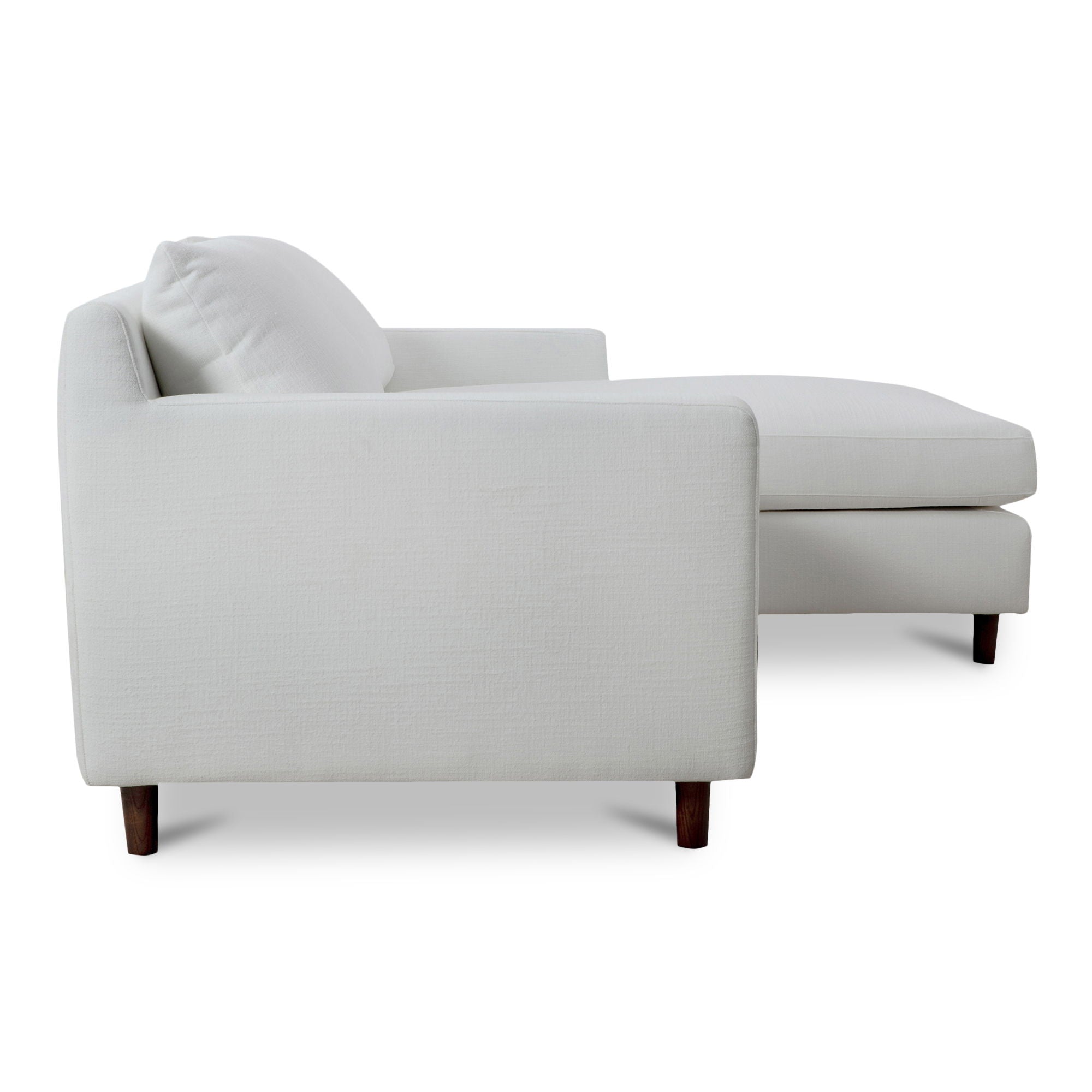 The Hutton sectional features soft-to-the-touch chenille fabric constructed from 100% polyester treated with C0 performance technology. A traditional higher back and tapered dark wood legs nod to mid-century aesthetics while providing contemporary coziness as a plush feather topper ensures unparalleled comfort.