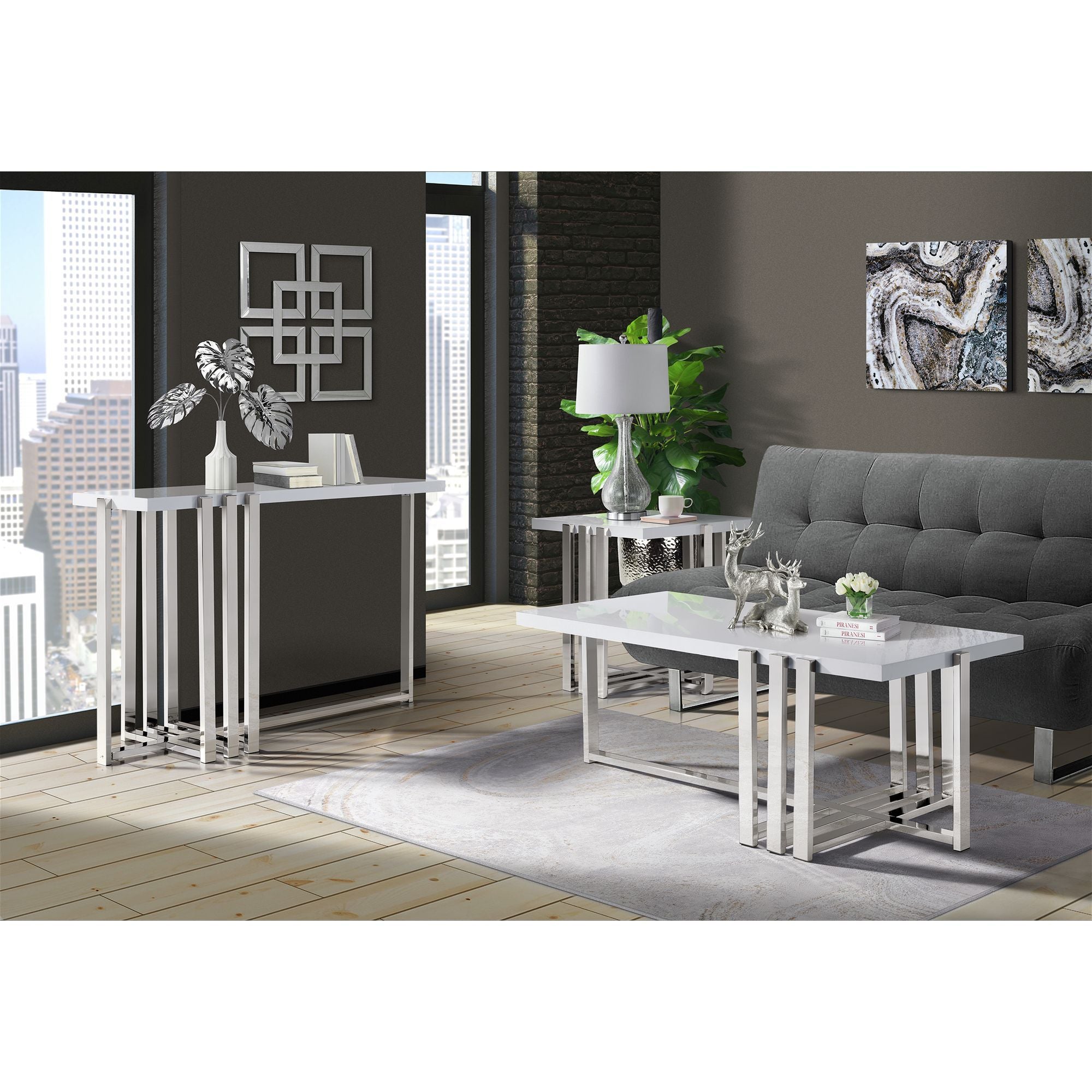 Let this occasional table be the next conversation starter at your next get together. This glam-inspired end table offers a beautiful modern appeal that will enhance any living space and entertainment area. It features a squared table top over an intricate openwork base design that is sleek and angular—sure to grab the attention of any and every guest.