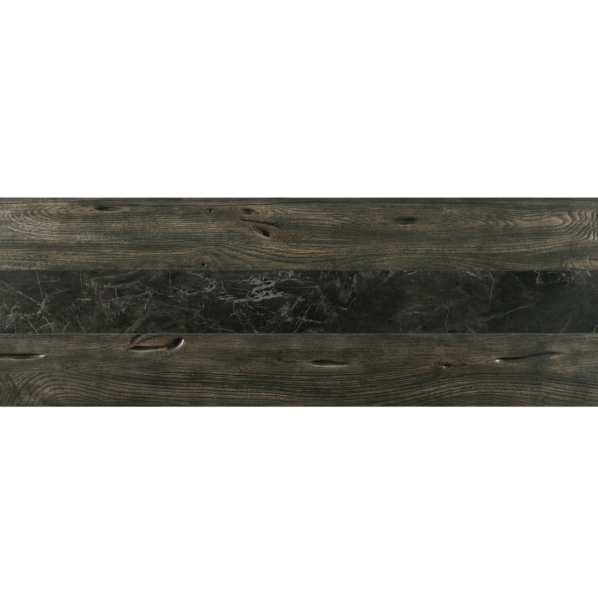 - Expertly crafted of ash veneers, Asian hardwood solids, engineered woods and sintered stone inlay with iron legs