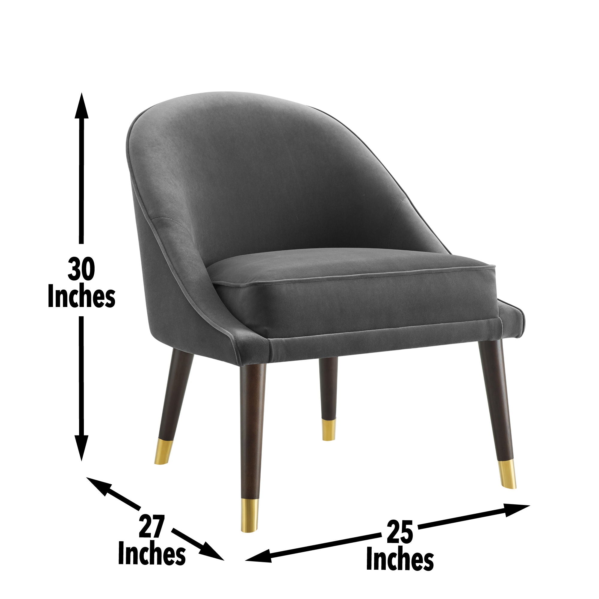 The Avalon accent chair packs a big punch in a small mid-century modern package. Small enough to fit just about anywhere but comfortable and stylish enough that you will want to place it everywhere, the Avalon is covered in lush velvet with tubular hardwood legs capped in brass color metal that adds flair and functionality.