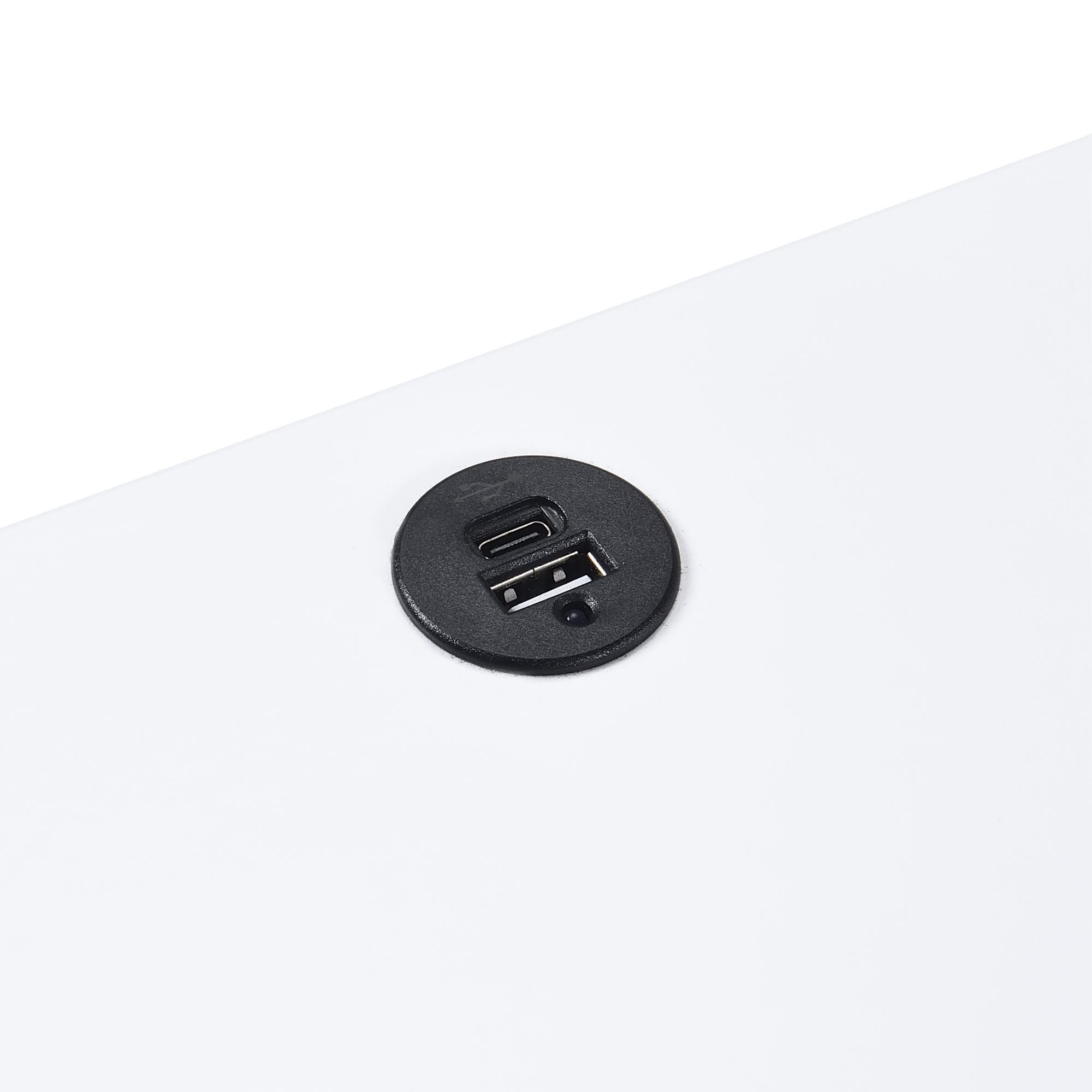 The Chandra End Table is a stylish and contemporary piece that will add a modern touch to your living space. Featuring a sleek glossy white finish, this end table is also equipped with battery LED blue lights to enhance the ambiance of your room. The table also includes a convenient Type-C USB port for charging your devices, a chrome-finished metal base, and a spacious drawer adorned with an acrylic handle for a chic look. The Chandra End Table's sleek and glossy finish makes this piece both a functional and fashionable addition to your home.