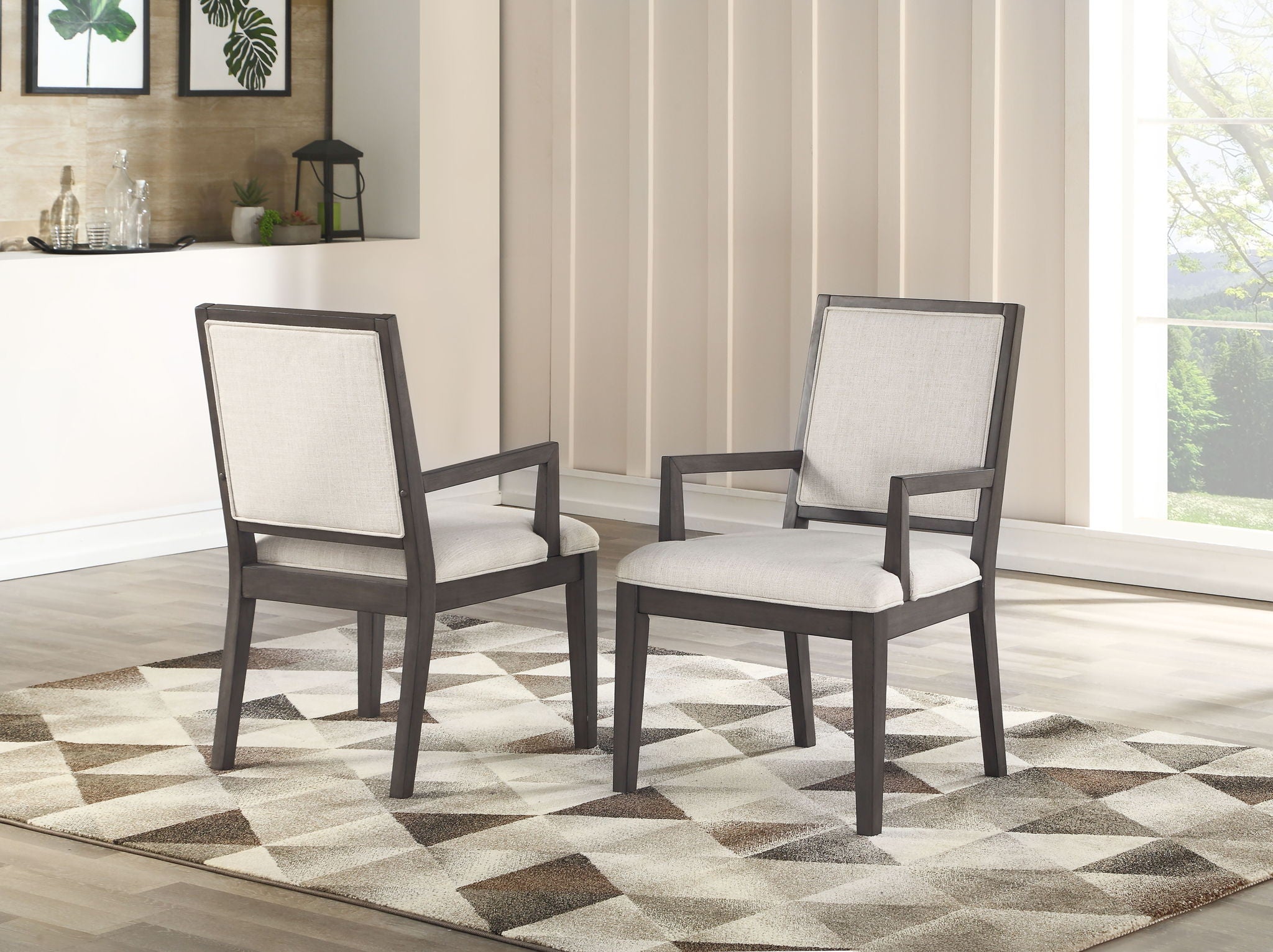 Entertain your family and friends with the bold contemporary styling of Mila. A fashion-forward washed grey finish over hardwood solids combines with bone linen fabric to make a stylish and comfortable Arm Chair. The back of the chair is wood-framed to make it as impressive from the back as from the front and also adds structural support to the chair.