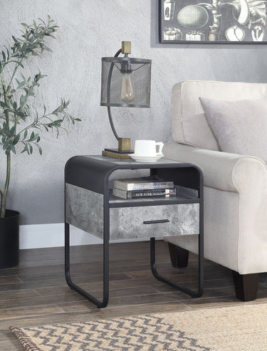 - Modern Design: This end table features a sleek Concrete Gray and Black finish, making it an ideal choice for contemporary interiors, blending functionality with style.