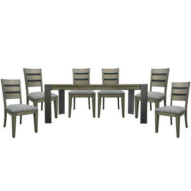 Casual and comfortable, this dining group from the Cedar Fork collection embodies transitional design. The set features a 78" Rectangle Leg Table and six of our coordinating Upholstered Seat Ladderback Dining Chairs in a smooth Smoked Arabica finish.