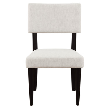 The Colvin Side Chair brings elegant comfort to dining, office, or accent areas. Wrapped in an exquisite eggshell polyester cover and sharply tailored with a box seat, this chair features a gracefully shaped back and natural black tapered, tubular legs, creating a sleek and cushioned seating experience that supports you for hours. The channeled texture of the cover adds a sensory element, enhancing the visual appeal and tactile satisfaction of your space. Built for lasting durability, the Colvin Side Chair boasts corner-blocked joints and solid wood legs, ensuring it remains a stylish and sturdy addition to your home for years to come.