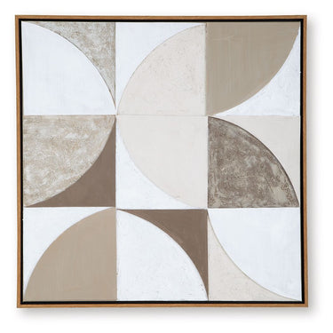 Make a bold geometric statement with this wall art. Its hand painted design balances curves and angles in soothing neutral tones, creating a captivating sense of movement and depth. Expertly finished with a light brown frame and four-way hanging versatility, this contemporary piece brings gallery-worthy style to your home.
