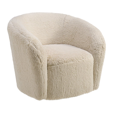 The Navajo Swivel Chair is the perfect combination of modern comfort and style. The chair's robust frame is constructed of quality solid and composite wood and is fully upholstered in soft and feathery polyester fabric, enveloping the comfortable and supportive foam cushioning. A rounded barrel silhouette channels coveted modern style, while a broad and sturdy swivel base allows 360 degrees motion. For a comfortable, durable, and stylish addition to your living space, the Navajo Swivel Chair is the ideal choice.