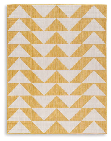 Introduce a touch of contemporary style and visual interest. This area rug's striking geometric print grabs attention while grounding your space. Perfect for indoor and outdoor use, it's a wonderful addition to any patio or stylish living room.