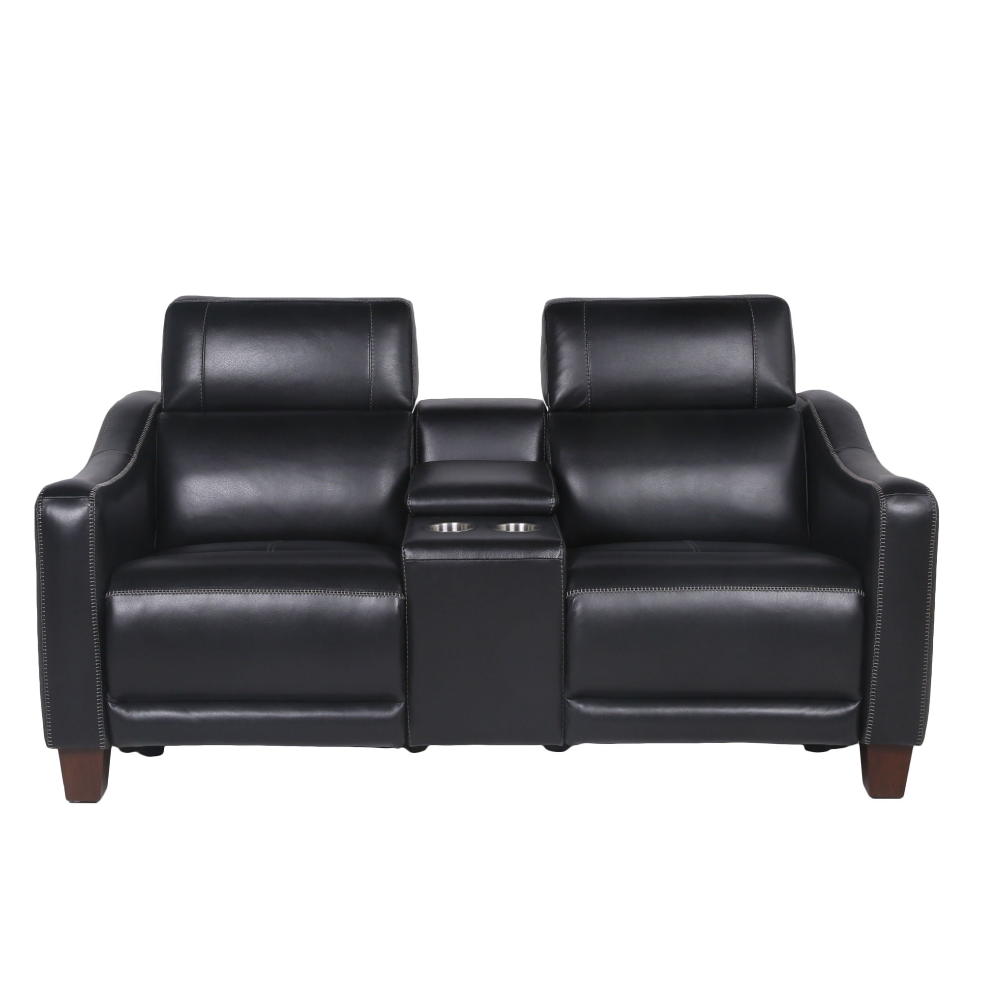 Transitional design in a dual-power leather Loveseat. This Loveseat works well when paired with the matching Sofa and Recliner or when used in smaller areas where space is at a premium. Both seats recline and feature top grain leather, stylish high-leg design and wall-saver reclining mechanism that ensures you won't bang up any walls. The midnight color matches virtually any decor scheme while ensuring comfort every time. The center console offers command central with hidden storage for those pesky, easy-to-lose remotes.