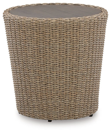 This end table completes your outdoor seating area with its fresh take on casual comfort. Handwoven resin wicker over a curving frame balances streamlined style and exceptional durability. An aluminum top polishes off the piece, acting as a perfect perch for snacks, beverages and decor.