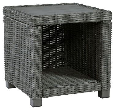 Add a distinguished touch of gray to your outdoor living space with this end table. This head-turning table is made with resin wicker over an aluminum frame for a relaxed look that provides seasons of enjoyment. Its aluminum top combines the exceptional durability and weather resistance you need with the "wood look" finish you love.