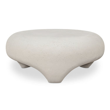 The Ines outdoor coffee table captures the essence of organic form with its flowing shape and textured finish. Each table is distinct, showcasing the natural variances of its concrete mix construction. This composition is expertly poured into a mold to achieve a free-form look that enhances outdoor spaces with its earthy, organic presence.