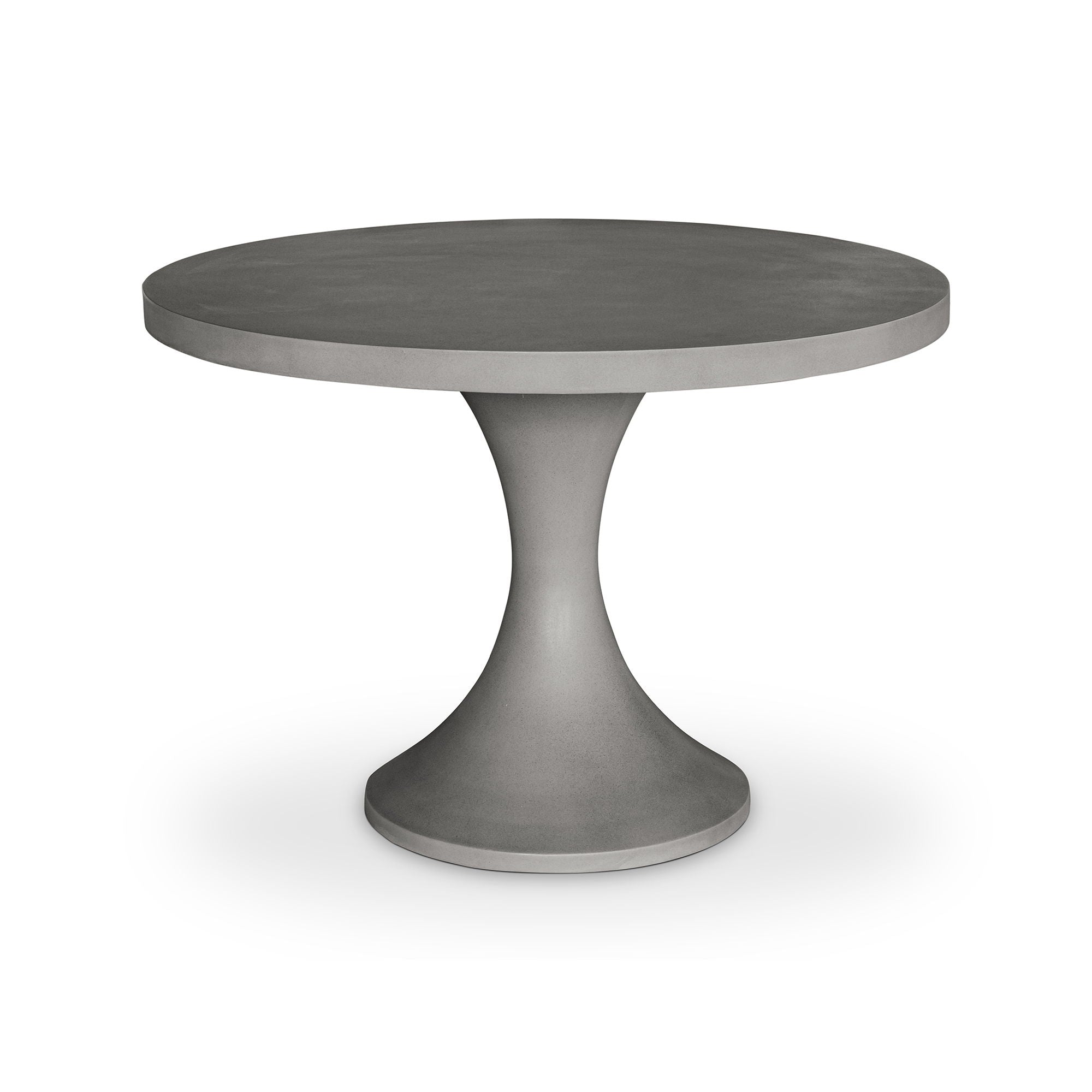 The Isadora is a 43.25" round dining table with a concrete base and a mix of cement and natural fibers top.
