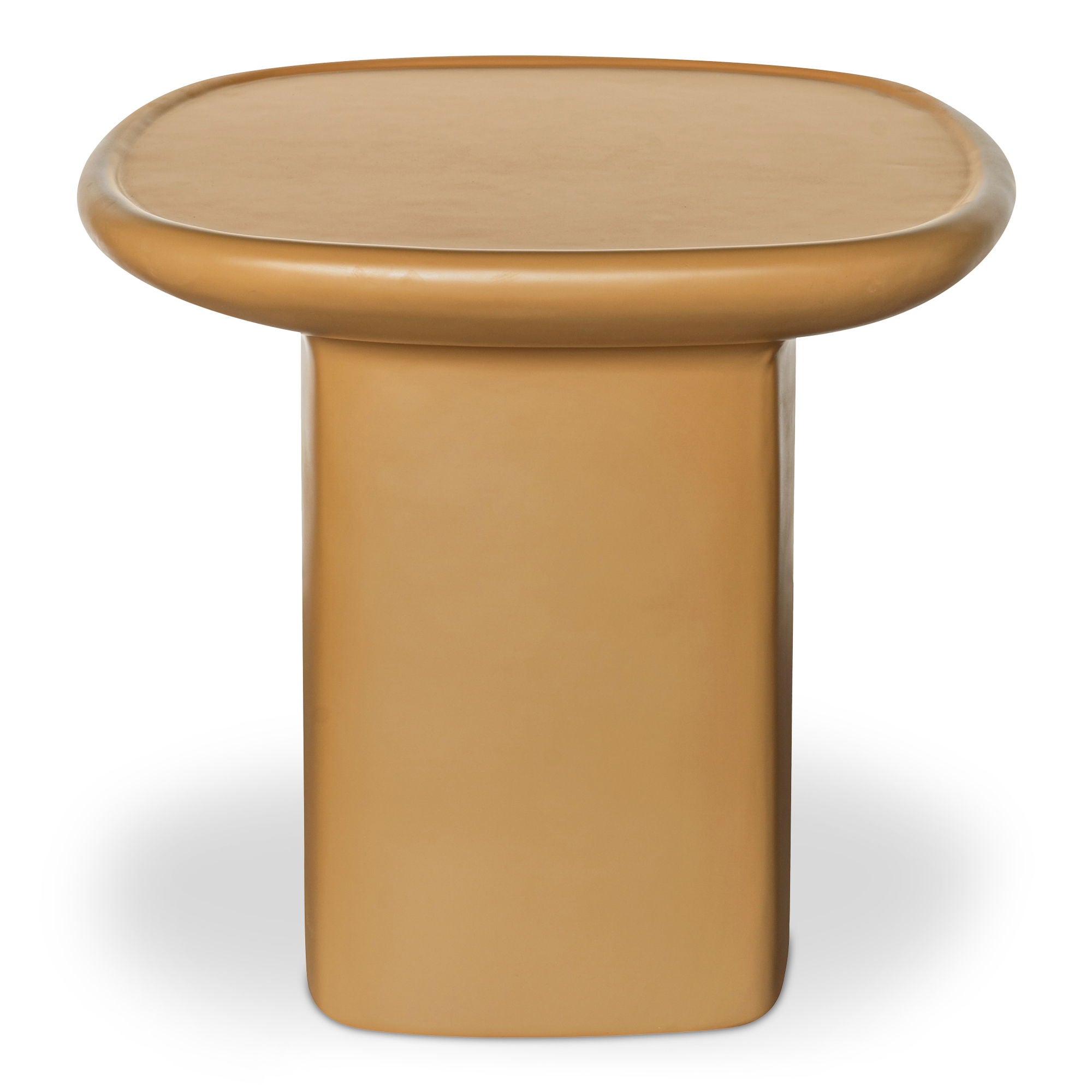 The Manon outdoor side table's pedestal silhouette, reimagined with gracefully rounded edges, elevates a classic shape with contemporary appeal. Crafted from an innovative blend of concrete and fiberglass, this piece offers enduring durability without compromising style for a striking focal point.